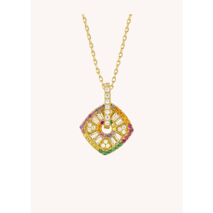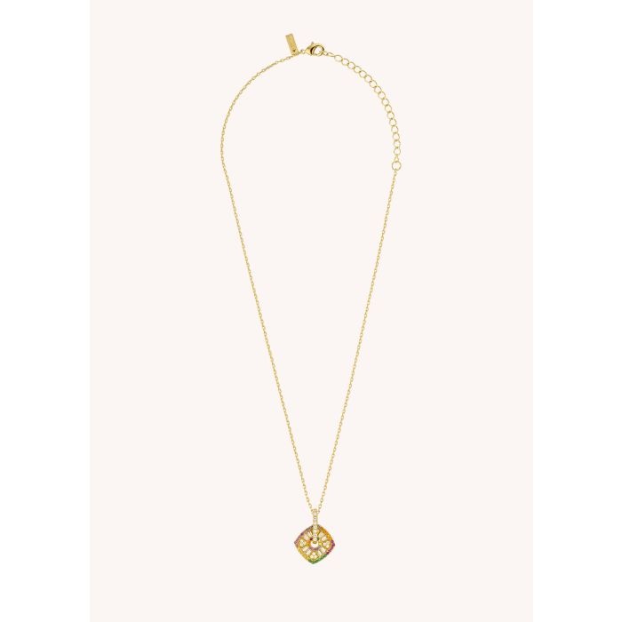 The RAINBOW SQUARE necklace by MYA—BAY is gilded with 24-carat recycled fine gold. Made of rhinestones in colorful hues, it captures the solar energy of summer days. With its 38 cm + 5 cm extra-chain, it can be easily adjusted to twist a neckline, a shirt or even a white t-shirt. Colorful, cheerful, bright — it's the perfect necklace to infuse a dose of summer vibes.