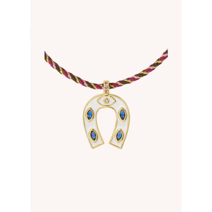 The WHITE MINI HORSESHOE necklace by MYA—BAY is gilded with 24-carat recycled fine gold. Its white enamel pendant, in the shape of a horseshoe, embodies purity, protection and understated elegance. Measuring 39 cm + 5 cm extra-warp, it is perfect on its own or as a mix & match. A timeless essential, lucky version.