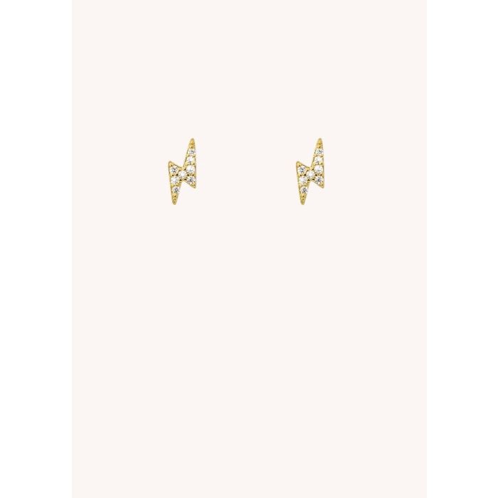 De FLASH-oorbellen van MYA-BAY, verguld met fijn goud en bezet met subtiele steentjes, geven je look een rock-chic schittering.
