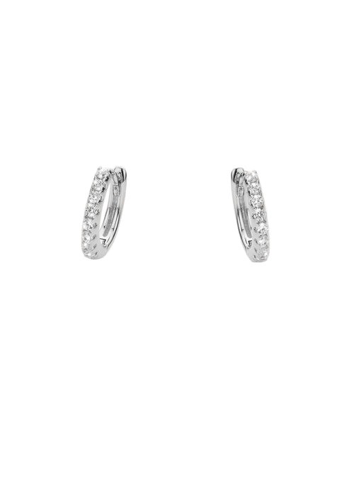 The DELHI earrings from MYA—BAY , available in fine gold plating or silver plating, take their name from the vibrant Indian capital. Their timeless design features a hoop fully set with gemstones for a refined sparkle.