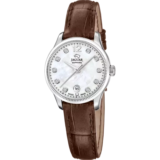 Jaguar Swiss Made Horloge J1046/2 voor dames, een juweel van precisie en elegantie. Dit verfijnde horloge heeft een 316L roestvrijstalen kast, bekend om zijn duurzaamheid en corrosiebestendigheid, waardoor de glans in de loop der tijd behouden blijft. Ontworpen voor de moderne vrouw die zowel functionaliteit als stijl waardeert, combineert dit horloge perfect de Zwitserse horlogemakerstraditie met eigentijds design. De zorgvuldig vervaardigde wijzerplaat biedt een duidelijke en verfijnde aflezing, terwijl het interne mechanisme uitzonderlijke precisie garandeert. Ideaal voor elke gelegenheid, van formele evenementen tot dagelijks gebruik, de Jaguar Horloge J1046/2 is meer dan een accessoire, het is een statement van goede smaak en onderscheid.