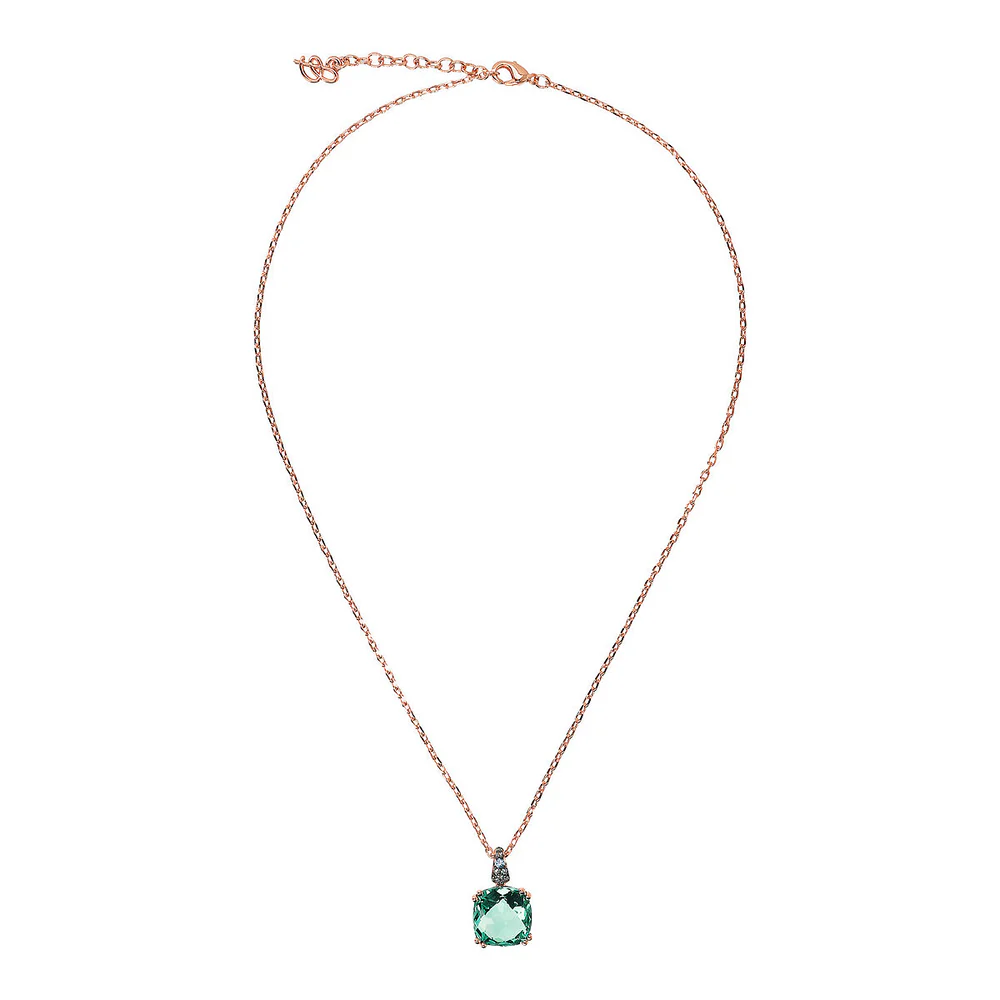 Bronzallure necklace made on a Golden Rosé base, 18kt rose gold plated, with rolo chain embellished with a pavé counter-link and a square gem prism pendant (12x12 mm); Lobster clasp closure with extender.