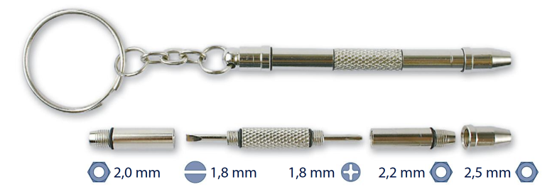 5-in-1 handige mini-schroevendraaier, ideaal om bij de hand te hebben als de vijsjes van je bril aangedraaid moeten worden!