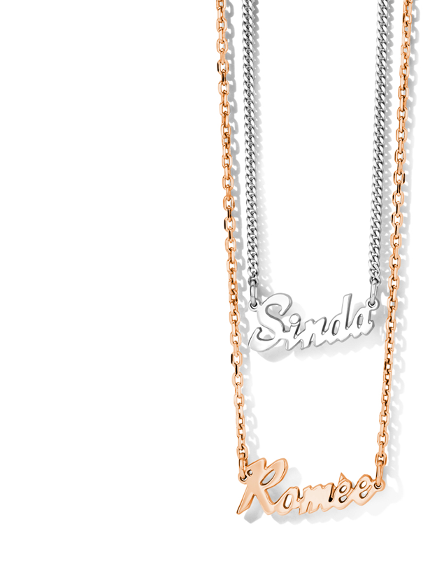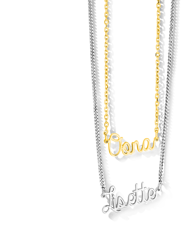 Kies uit verschillende halskettingen en lettertypes, en bepaal de kleur: zilver, verguld rozé goud of verguld goud. De prijs varieert van €109 tot €148. Bestellen kan via mail, telefonisch of in de winkel. Perfect als persoonlijk cadeau of voor jezelf! Levertermijn is 3 weken.