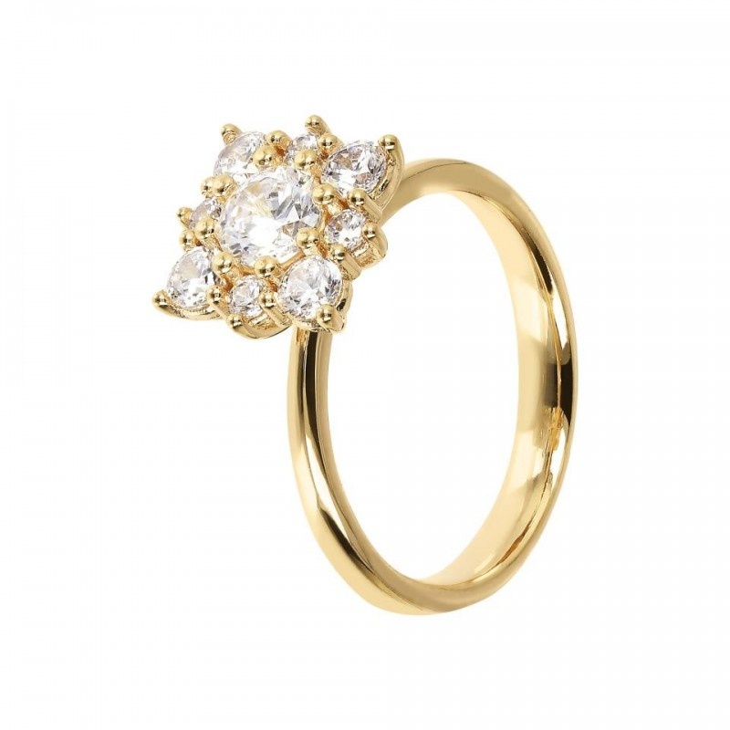 18 karaat gouden ring ingelegd met zirkonia diamanten. De ringmaat 16. Deze ring is van het Italiaanse merk, Bronzallure.