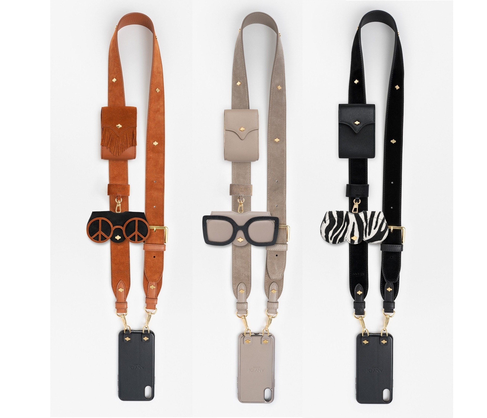 The MoneyKey Pocket has been specifically designed to store your keys, notes and your most important cards. Made of soft nappa leather, the pocket is equipped with a note compartment, card slot and a key ring that can be released with a press stud. The pocket can be closed with a real gold-plated push button and can be securely attached to the ANY DI Pocket PhoneStrap thanks to the leather loop on the back. Of course, the small compact wallet also shines on the ANY DI GoldChain, or in your ANY DI handbag, where you could attach it to the key finder.