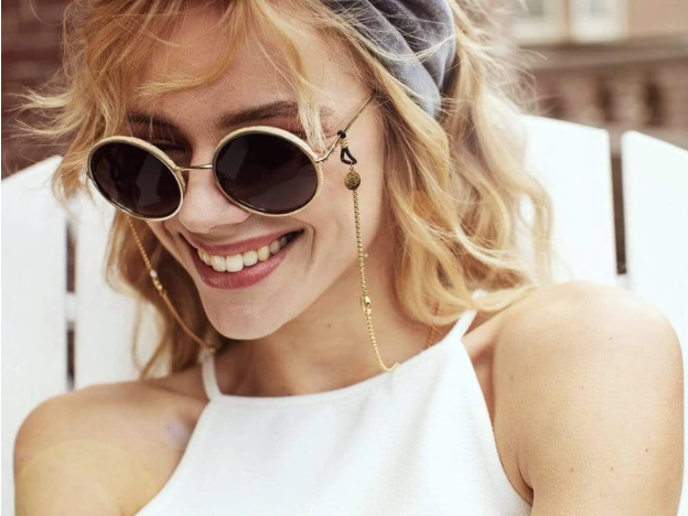 Prachtige goudkleurige brilketting van het Nederlandse merk, Sunny Cords. Lees meer