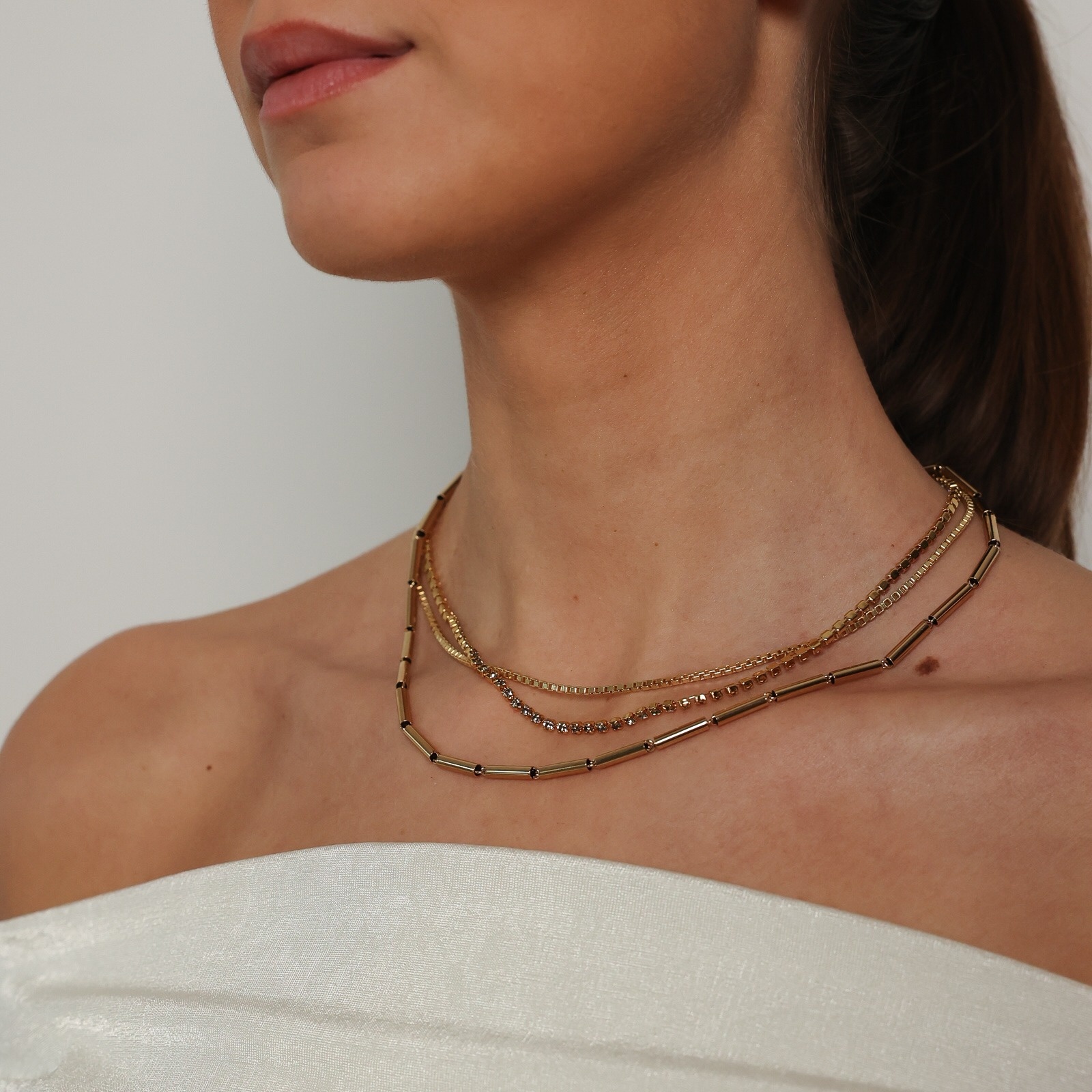 Ontketen jouw creativiteit met de TILLY armbanden en kettingen, waar veelzijdigheid samensmelt met verfijning in de wereld van accessoires. Mix en match deze prachtige stukken om een subtiele, verfijnde look samen te stellen, of laag ze voor een verbluffende statementstijl. Ideaal voor zowel de minimalist als de gedurfde fashionista; TILLY is er voor degenen die verfijnde sieraden waarderen, verfraaid met 24-karaats gouden kwaliteit en sprankelende strass-steentjes.